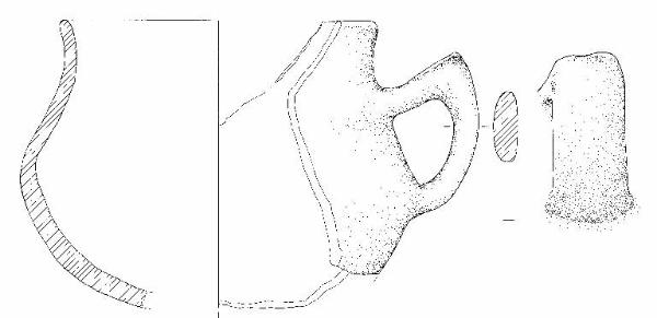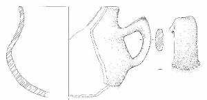Corpo globoso/biconico con orlo esoverso arrotondato. Ansa a gomito con ponticello superiore obliquo, impostata a tre quarti dell'altezza. Colore grigio scuro.