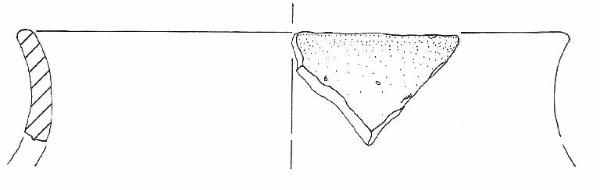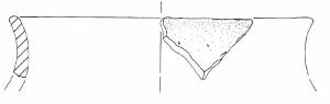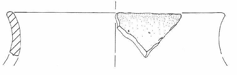 Orlo leggermente esoverso piatto liscio, profilo complessivamente globoso sinuoso, spalla ventre e base piana non conservati.\nNon si conserva traccia dell'ansa. Colore: da beige a grigio scuro con focatura.
