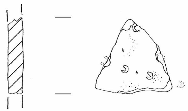 Piccolo fr. di parete di vaso di morfologia non ricostruibile.\nReca una decorazione a impressioni a C ottenute con l'estremità inclinata di una cannuccia cava, poste su due file sovapposte, impresse in direzione opposta. \nColore: bruno.
