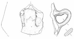 Orlo e base assenti, si conserva una porzione di parete in corrispondenza dell'ansa, conformata ad angolo e restituente un profilo complessivamente biconico o biconico carenato. \nAnsa con sezione a nastro piuttosto largo e sottile in sezione e caratteristico profilo ad orecchio schiacciato, impostata fra max espansione e collo poco sotto l'orlo. \nColore: da grigio a bruno-nero.