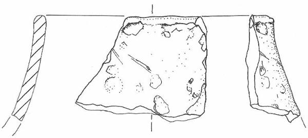 Orlo piatto liscio, il breve tratto conservato del collo troncoconico restituisce un profilo chiuso complessivamente globoso o biconico-globoso, spalla ventre e base non conservati.\nNon si conserva traccia dell'ansa. Colore: bruno.