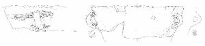 Orlo arrotondato liscio con andamento fortemente irregolare, corpo a profilo troncoconico piuttosto svasato con andamento della parete leggermente convesso, base piana non conservata.\nSulla parete poco sotto l'orlo, non perfettamente opposte (distanziate di circa 170 gradi), si conservano due anse di fattura piuttosto irregolare e diverse tra loro: la prima ha dimensioni maggiori, sezione a nastro e profilo a orecchio, e una decorazione associata di due cordoncini plastici a sezione triangolare di fattura assai trascurata e lunghezza diversa desinenti dalla radice superiore dell'ansa a prolungamento della stessa nelle due direzioni; l'altra ha dimensioni nettamente inferiori, sezione a bastoncello e profilo a orecchietta. Colore: da marrone a bruno.