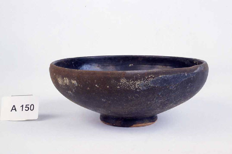 Piede ad anello, vasca semisferica. Decorazione a palmette impresse sul fondo.