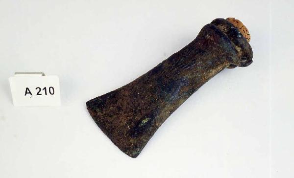 Ascia a taglio ricurvo con immanicatura cilindrica e piccolo anello di sospensione (Tipo Manduria).