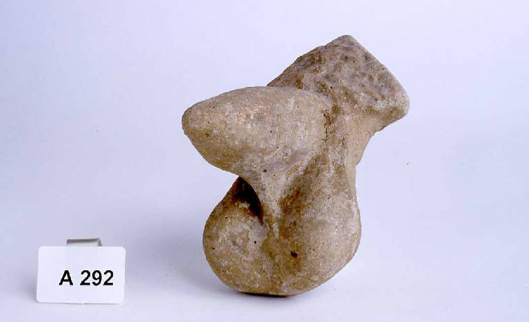 Organo sessuale maschile votivo con pube naturalistico a triangolo e testicoli svasati.