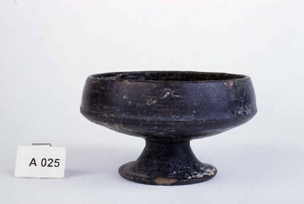 Vasca carenata ad orlo rientrante su alto piede a tromba. Decorazione impressa a festone sotto l'orlo.