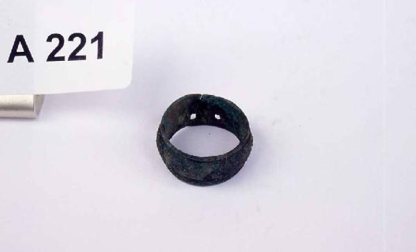 Anellino a fascetta a margine arrotondata con 2 piccoli fori.