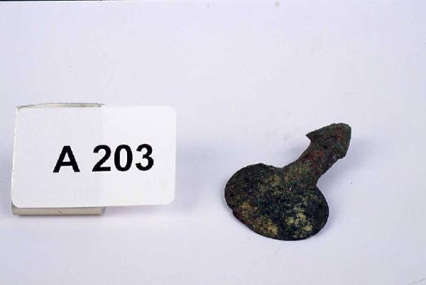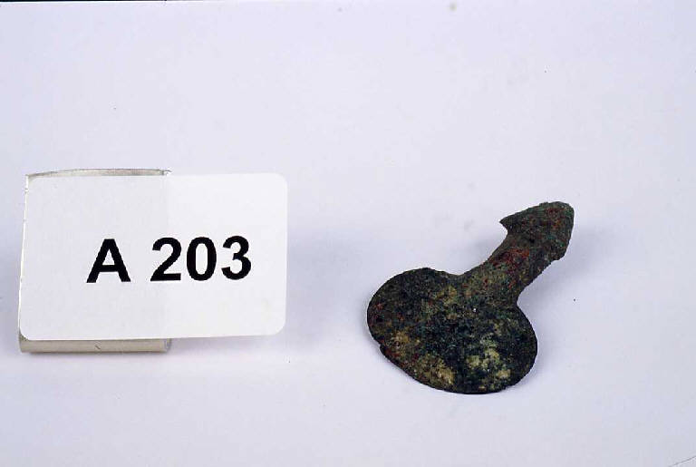 Corpo ovoidale con attacco inferiore e elemento a freccia.