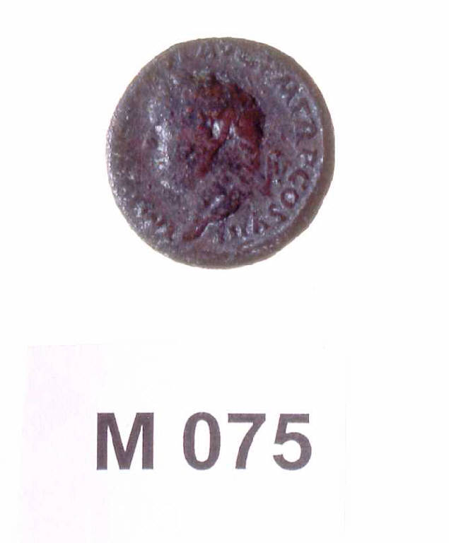 D/IMP...AVGPMTRPCOSVIII Testa di Tito a destra\nR/illegibile Figura stante con rsmo (?) nella destra S C