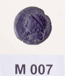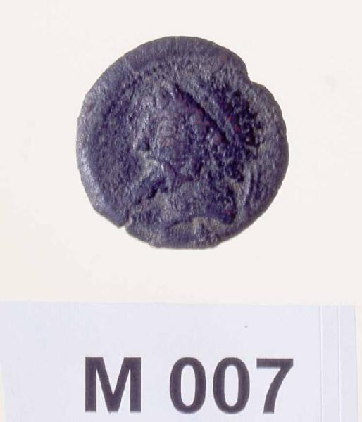 D/Testa di sovrano laureata a sinistra\nR/Cavallo impennato a destra con ramo palma Mem Nun sotto il ventre