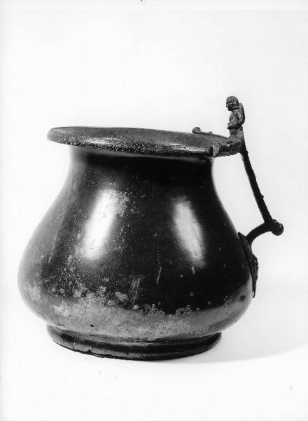 - NOTIZIE STORICO CRITICHE Rinvenuta nel 1901 nella zona di porta Venezia, probabilmente nell'odierna via Opifici, l'olpe fu donata a Mons. Geremia Bonomelli, che, a sua volta, la donò nel 1902 al Museo Civico. Benchè sia sempre stato definito come "olpe", cioè contenitore per liquidi, questo recipiente, a causa dell'imboccatura particolarmente larga, era più probabilmente destinato a contenere dei cibi solidi. La datazione all'età augustea è confermata dallo stile arcaizzante, tipico dell'epoca, con cui è resa la sirena, in particolare la sua acconciatura.\nIl luogo del rinvenimento, presso la via per Brescia, è stato individuato come area suburbana di necropoli di epoca romana e ha restituito altre testimonianze di carattere funerario.