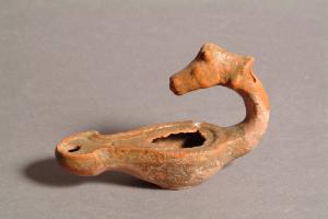 Monolicne, corpo ovale con spalla sagomata, presa a sezione circolare desinente con protome equina con collare, canale aperto