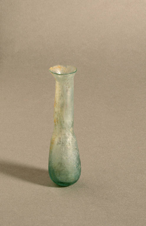 Orlo estroflesso, lungo collo cilindrico separato dal corpo piriforme da una strozzatura, apodo, fondo convesso