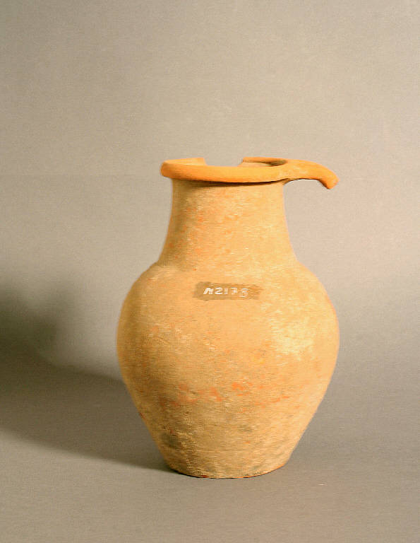 Orlo estroflesso ingrossato arrotondato, ampio collo troncoconico svasato verso il basso, che si imposta sul corpo ovoidale con una spalla leggermente rialzata; apoda, fondo a disco