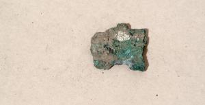 Frammento irregolare di lamina con incrostazioni