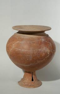 Olla a corpo globulare, largo orlo estroflesso e piede fenestrato