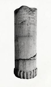 Con dedica agli imperatori Diocleziano e Massimiano. In basso conserva parte delle scanalature della colonna da cui probabilmente è stato ricavato il miliario.