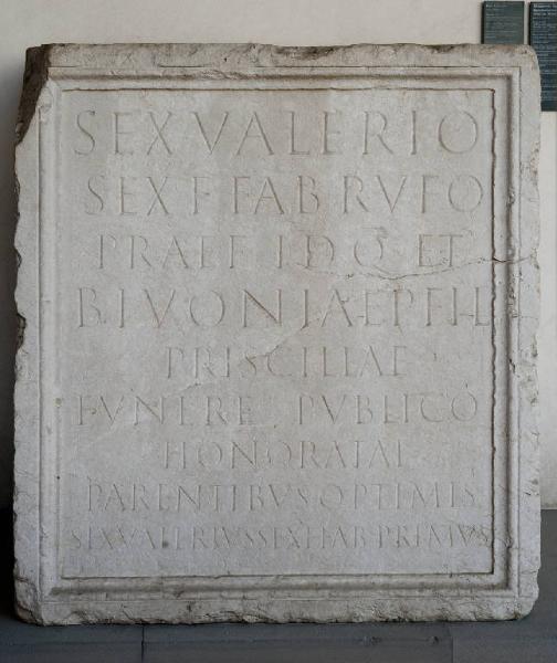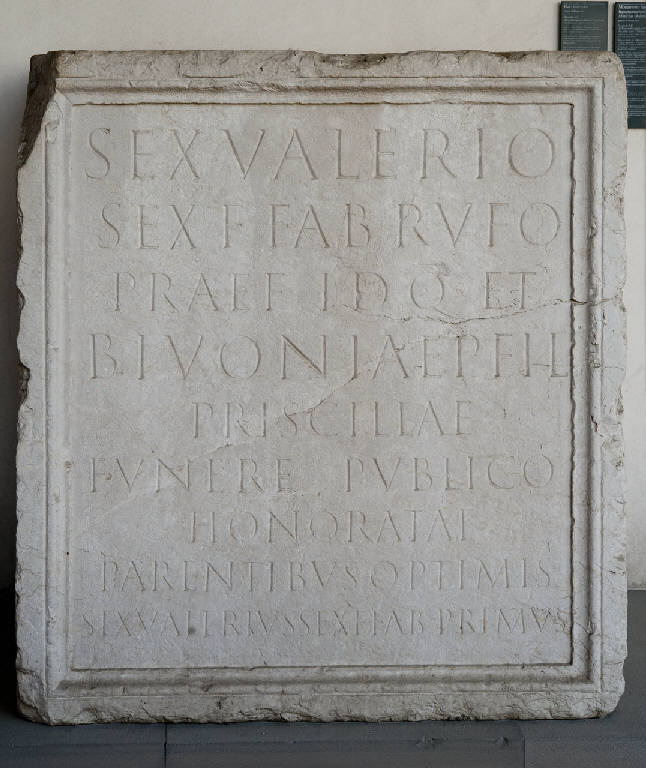 Cippo quadrangolare coi lati lisci e specchio epigrafico compreso entro una cornice modanata