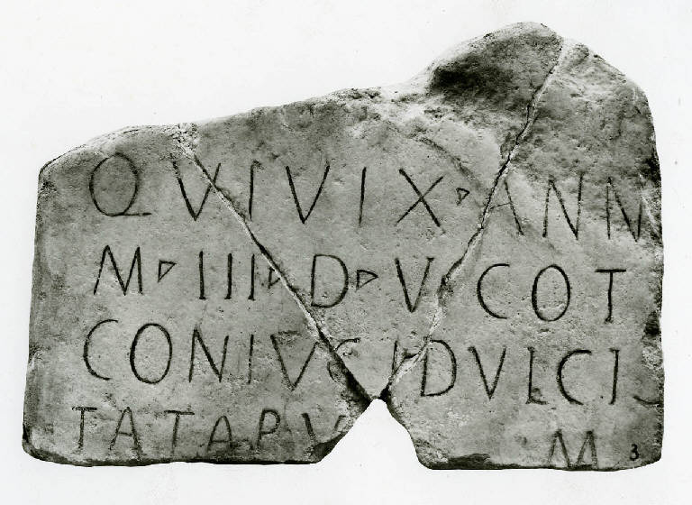 Frammento di epigrafe sepolcrale con iscrizione distribuita su quattro righe