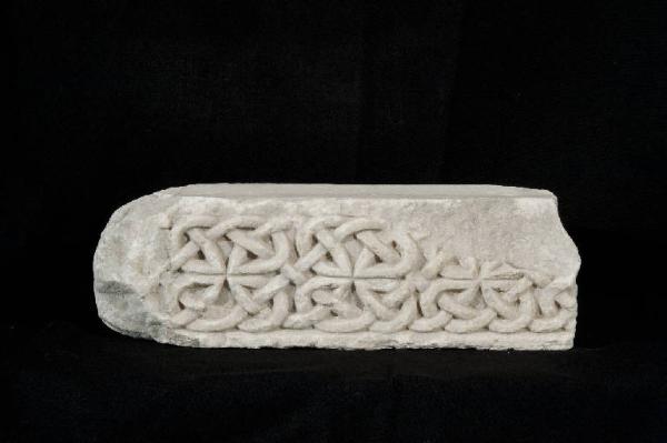 Frammento di pilastrino con decorazione su un solo lato costituita da cappi incrociati e disposti su due file parallele.