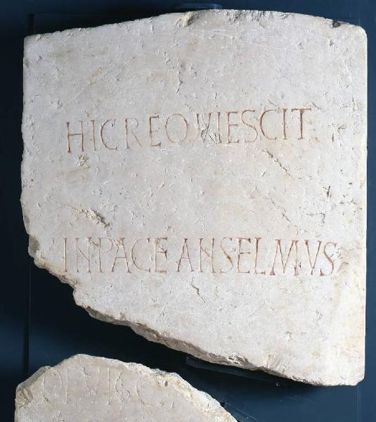 Due frammenti di lastra con iscrizione funeraria di Anselmus