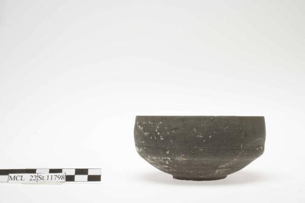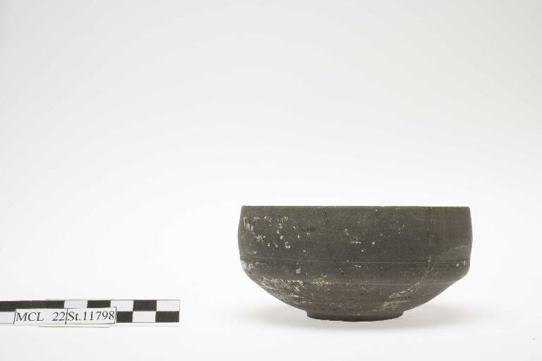 Coppetta emisferica a pareti sottili; Vasca cilindrica, bassa carena, orlo arrotondato diritto.