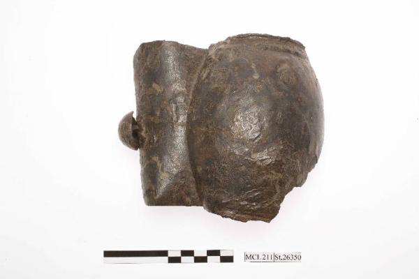 Umbone di scudo in ferro "a farfalla", con alette lunghe e svasate.