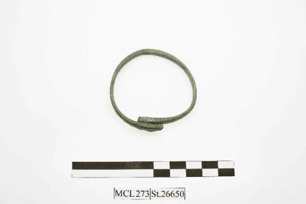 Armilla in bronzo ad estremità ingrossate, sezione semicircolare.