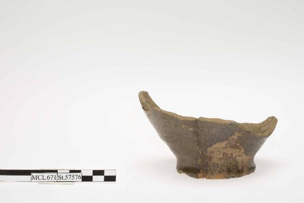 Fondo di olpe invetriata, piede ad anello.