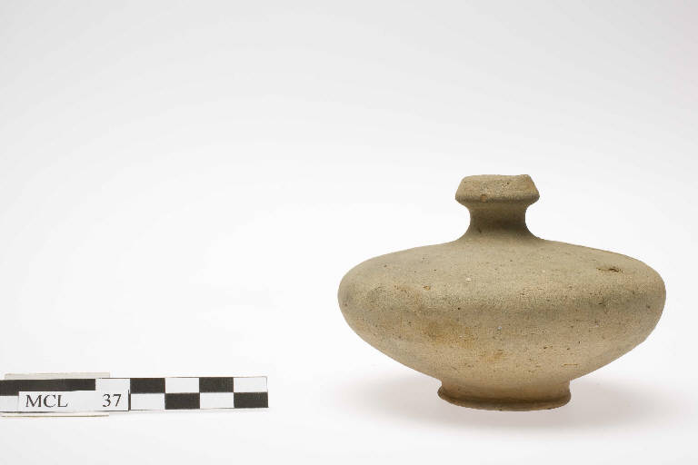 Vaso a trottola di forma schiacciata, piede ad anello.