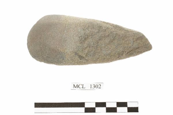 Ascia in pietra verde levigata di forma tendenzialmente trapezoidale.