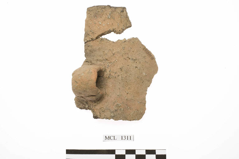 Frammento di vaso biconico, orlo arrotondato, piccola ansa rotonda a nastro subito sopra la carena.