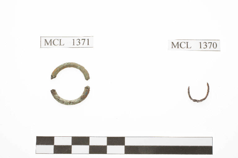 Due frammenti di anello in rame, sezione circolare.