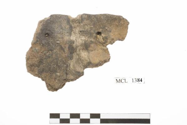 Frammento di orlo di olla a fori non passanti. Impasto grossolano.