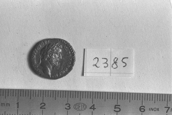 Recto: Testa laureata di Antonino Pio, a destra . Contorno di perline.\nVerso: Aequitas, con corona fitomorfa, drappeggiata, stante, a sinistra, tiene la bilancia nella destra protesa e la cornucopia nella sinistra. Contorno di perline.