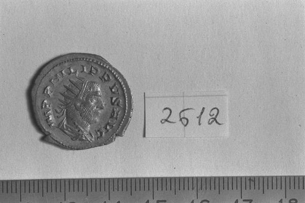 Recto: Busto radiato, drappeggiato e corazzato di Filippo I, a destra . Contorno di perline.\nVerso: Leone, gradiente, a destra . Contorno di perline.