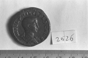 Recto: Busto drappeggiato a testa nuda di Filippo II, a destra . Contorno di perline.\nVerso: Filippo II, in vesti militari, stante, a destra , con lancia trasversale nella destra e globo nella destra. Contorno di perline.