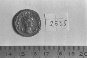 Recto: Busto diademato e drappeggiato su crescente di M. Otacilia Severa, a destra . Contorno di perline.\nVerso: Ippopotamo, stante, a destra . Contorno di perline.