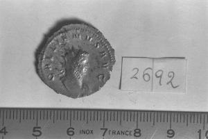 Recto: Busto radiato e corazzato di Gallieno, a d, visto dalla fronte. Contorno di perline.\nVerso: Leone, in corsa, a destra . Contorno di perline.
