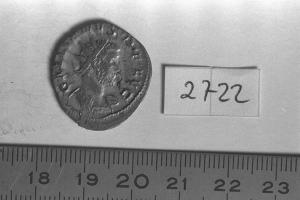 Recto: Busto radiato e corazzato di Gallieno, a d, visto dalla fronte. Contorno di perline.\nVerso: Victoria, alata, drappeggiata, stante, a sinistra, sferra un calcio ad un prigioniero seduto, in catene, davanti a lei. Contorno di perline.