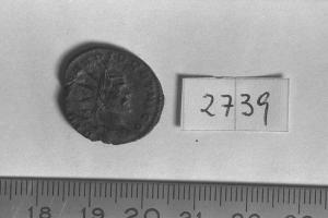 Recto: Testa radiata di Claudio II il Gotico, a destra . Contorno di perline.\nVerso: Altare, su cui arde una fiamma; un globetto per anta. Contorno di perline.