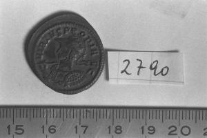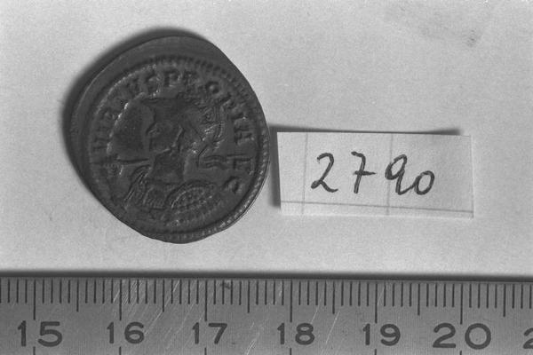 Recto: Busto elmato, radiato e corazzato di Probo, a sinistra, con lancia e scudo. Contorno di perline.\nVerso: Pax, diademata e drappeggiata, stante, di fronte, rivolta a sinistra, con ramo d'olivo nella destra levata e scettro trasversale nella sinistra. Contorno di perline.
