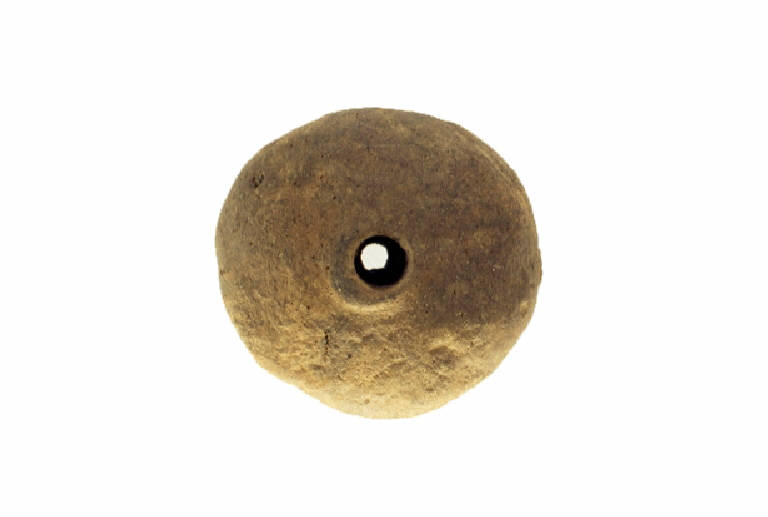Fusaiola discoidale schiacciata; il diametro del foro si restringe da cm.0.7 a cm.0.4.