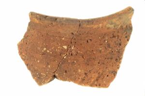 Orlo piatto, obliquo verso l'interno, breve labbro verticale, con attacco indistinto della spalla a profilo rettilineo. Sulla spalla decorazione incisa a zig zag doppio spezzato.