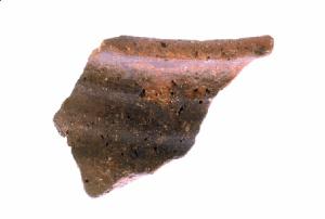 Orlo arrotondato, breve labbro estroflesso a profilo curvilineo, spalla mediamente accentuata. Leggere scanalature orizontali e parallele sulla spalla.