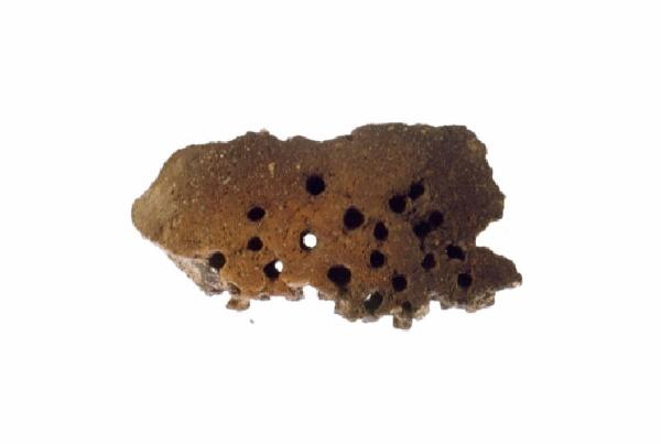 Probabile fondo di vasca con numerosi fori passanti (diam. cm 0.01-0.02) disposti irregolarmente.