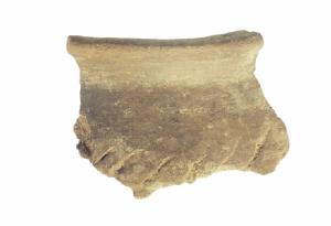 Orlo arrotondato, labbro leggermente estroflesso a profilo rettilineo, spalla mediamente pronunciata, attacco del corpo ovoide-cilindrico. Incisioni oblique parallele sulla spalla.