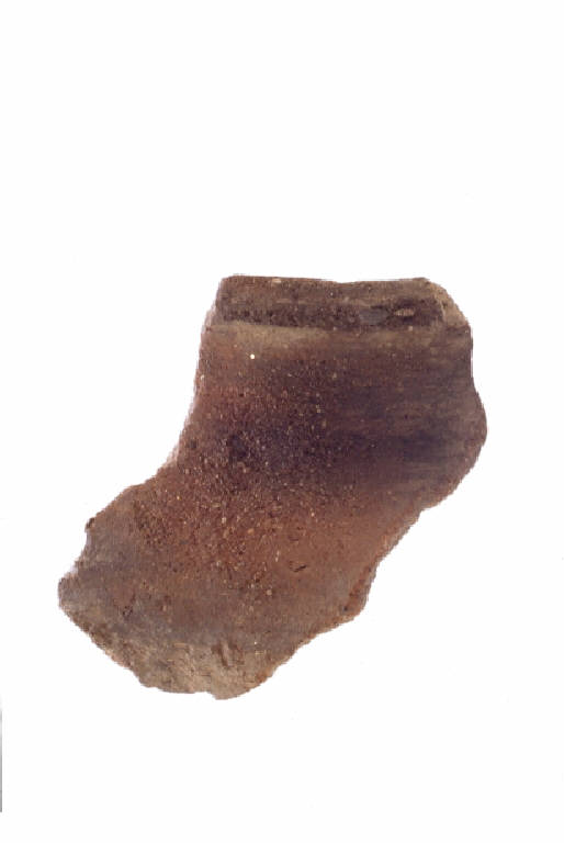Orlo appiattito, breve labbro quasi verticale a profilo leggermente curvilineo, con spalla pronunciata distinta all'attacco con il corpo probabilmente ovoide.
