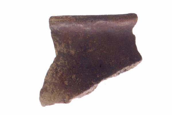 Orlo arrotondato, labbro estroflesso a profilo curvilineo, con spalla indistinta e corpo probabilmente ovoide.