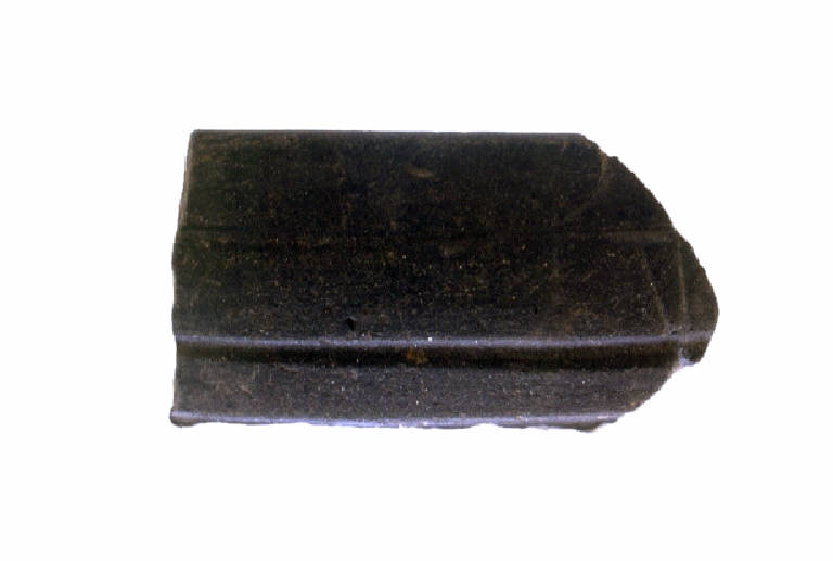 Orlo appiattito e distinto verso l'interno, labbro rientrante a profilo curvilineo, attacco della carena arrotondata. Tre incisioni parallele e orizzontali sul labbro.